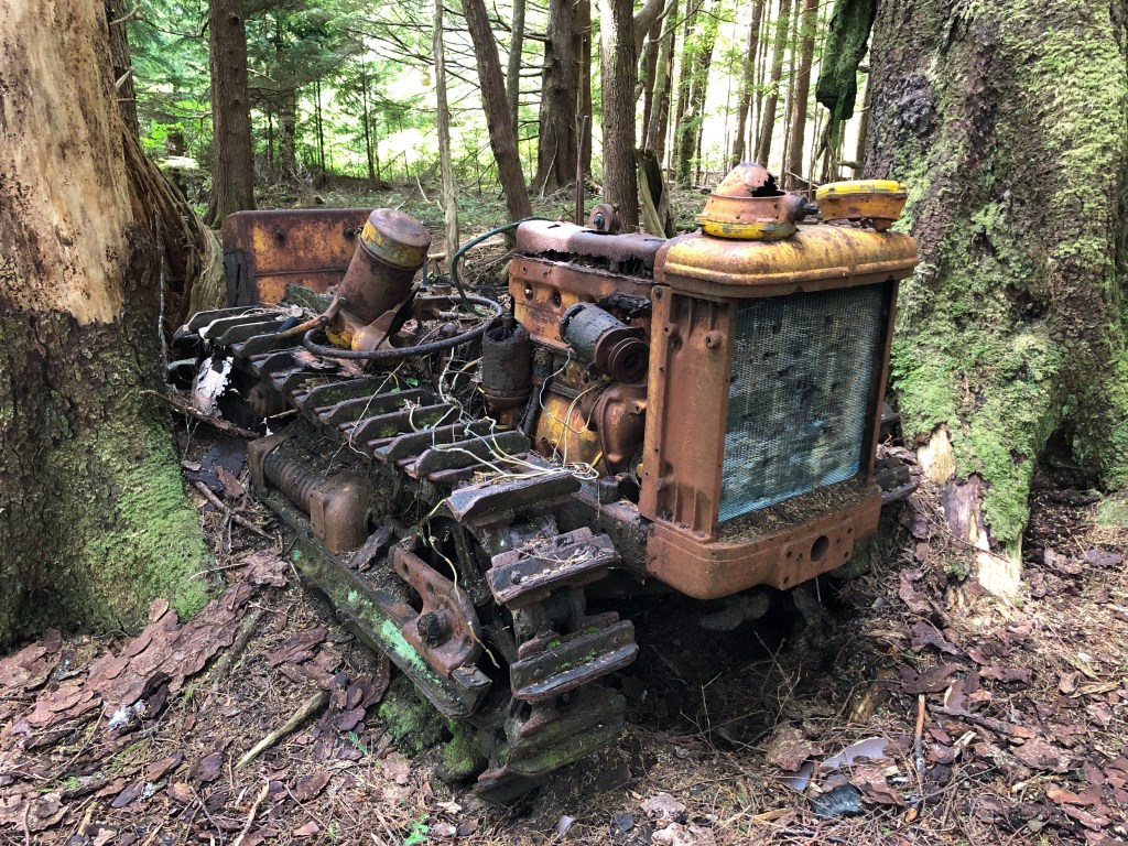 The CAT tractor and some of the road and building remains probably date from WWII when the Canadian and US Militarys operated a radar station with a 70 man camp in the Cape Scott area.
